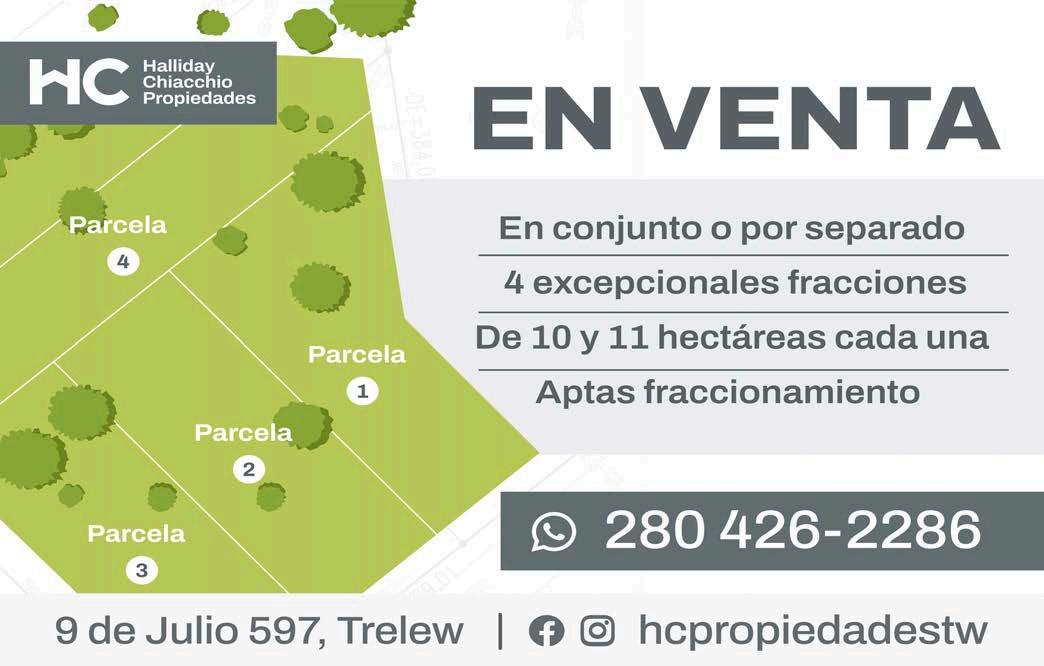 Vendo Tereno en zona de chacras a 4 km de Trelew con mejora y galpon 1 hectarea 3/4 .papeles al dia listo para transferir. No sms. Trelew. Cel. 0280 4695237 (1005)