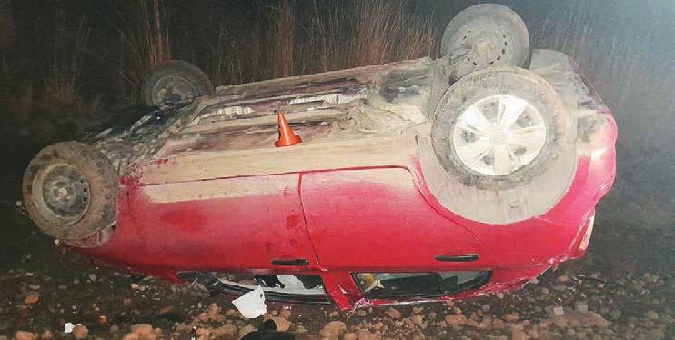 ● Un animal se cruzó delante de un Nissan March en la ruta 259. Por la maniobra brusca el coche volcó. Su conductor y su acompañante terminaron en el Hospital. P. 20