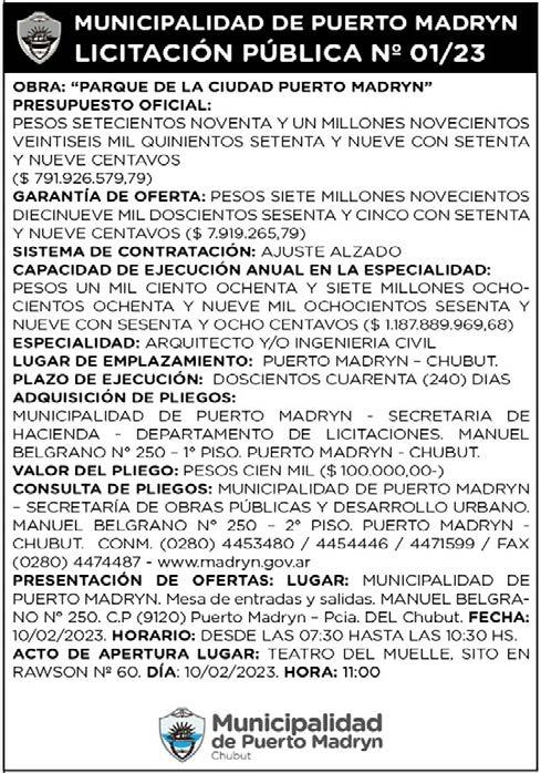 con una inversión de casi 500 millones de pesos y mi opinión es favorable también porque implica inversión, construcción en Trelew, movimiento de los proveedores locales, favorecer el punto de vista comercial. Es importante lo que estamos hablando, son dos emprendimientos de gran envergadura en una ciudad que se asienta como ciudad de servicios”.
