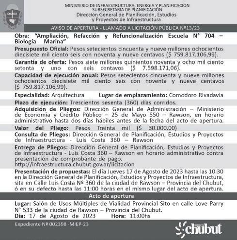 Hablando de la Legislatura, la semana pasada el Ministerio de Producción y Trabajo de la Nación publicó en el Boletin Oficial de la República Argentina una resolución sobre el Convenio Colectivo de Trabajo de los trabajadores legislativos de Chubut.