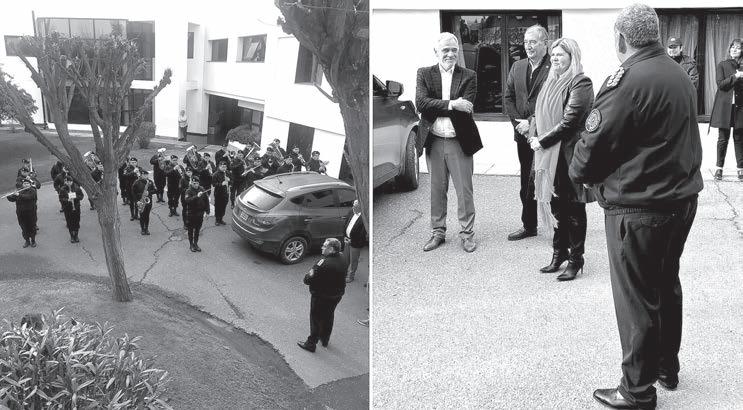 Banfi sonrió, agradeció y, seguramente, no se olvidará nunca más cuando la Banda de Policía del Chubut le celebró su onomástico.