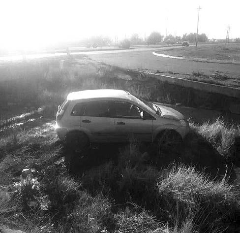 provincia en dirección al balneario rawsense, cuando el chofer de un automóvil Ford Fiesta no pudo efectuar una maniobra evasiva ante el ancierro de otro vehículo, despistó y finalizó chocando y dentro del canal de desagüe contiguo a la ruta. Independientemente de los daños materiales, no se registraron lesionados.#
