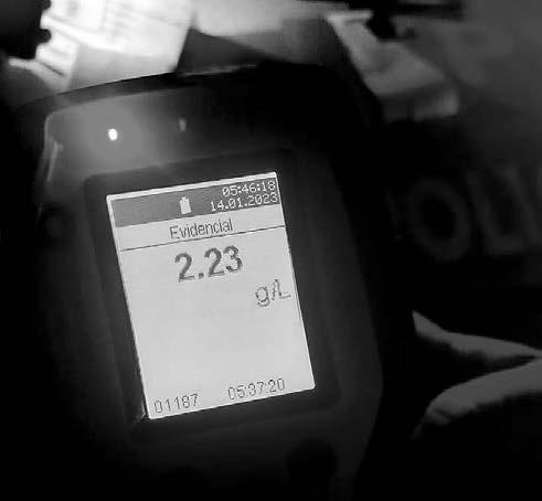 Tras la peligrosa maniobra, emprendió la fuga, aunque a los pocos metros fue interceptado y demorado. Realizado el test de alcoholemia al conductor, arrojó 2.23 g/l de alcohol en sangre, lo que motivó actuaciones administrativas por infracción a la Ley Nacional de Tránsito.