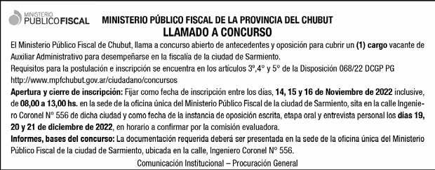 Domicilio legal: Yrigoyen 583 (9100) Trelew, provincia de Chubut. Tel./Fax: (0280) 442-2209 (líneas rotativas). recepcionjornada@grupojornada.com