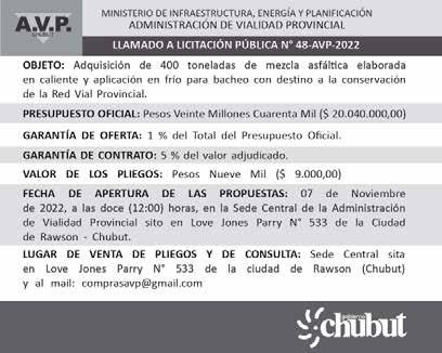 Publicidad: Departamento Comercial Yrigoyen 583 Tel.: (0280) 442-2209. e-mail: gcomercial@grupojornada.com