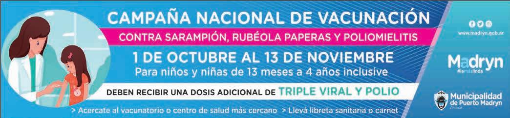 L chubut ya vacunó a 10 mil niños con el refuerzo de sarampión, paperas, polio y rubéola. debe llegar a 28 mil. P. 10 Luz y Fuerza inaugura 6 seccionales en chubut P.12