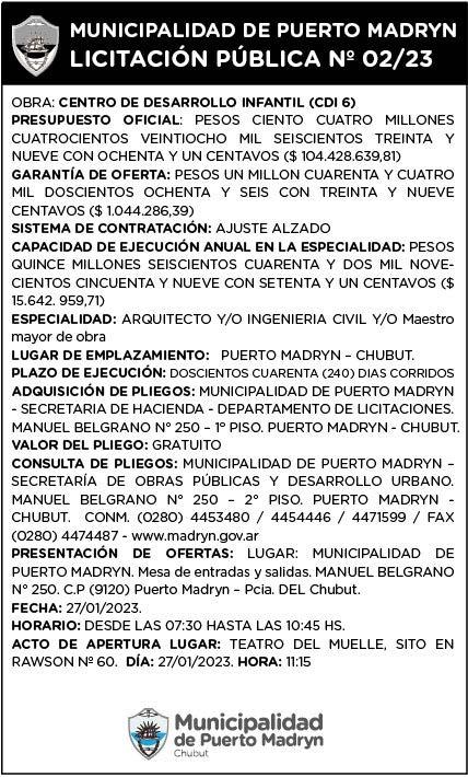 Domicilio legal: Yrigoyen 583 (9100) Trelew, provincia de Chubut. Tel./Fax: (0280) 442-2209 (líneas rotativas). recepcionjornada@grupojornada.com