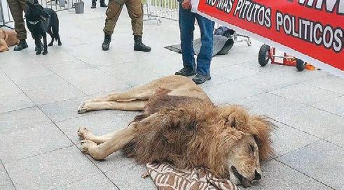 Funcionarios del zoológico de Los Ángeles, 500 kilómetros al sur de Santiago, dejaron un león muerto y exhibieron un cartel que decía: “El Gobierno mata animales” frente a La Moneda, sede de Gobierno chileno, como rechazo a una decisión oficial que obliga a sedar a los animales, lo que provocó la muerte del león.