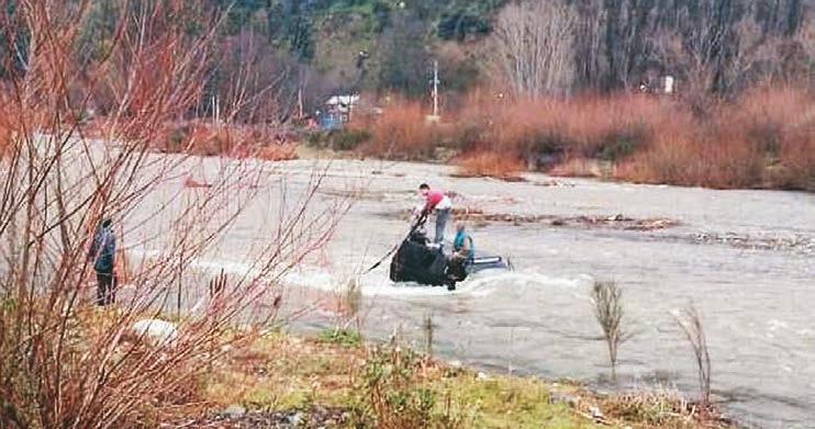● Dos jóvenes intentaron cruzar el río Quemquemtreu y se les dio vuelta la camioneta. Fueron arrastrados por la correntada y quedó sumergida casi por completo. P. 23