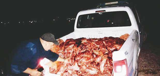 toneladas de carne de guanaco fueron incauta das a bordo de 2 camione tas en Telsen. También armas blancas.