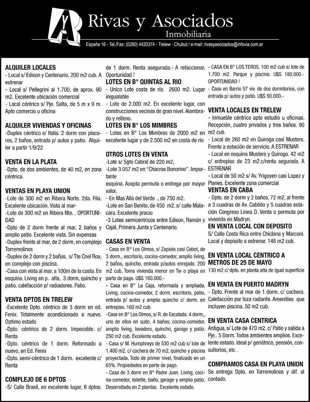 Publicidad: Departamento Comercial Yrigoyen 583 Tel.: (0280) 442-2209. e-mail: gcomercial@grupojornada.com