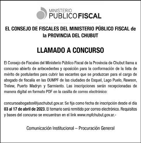 Publicidad: Departamento Comercial Yrigoyen 583 Tel.: (0280) 442-2209. e-mail: gcomercial@grupojornada.com