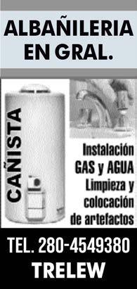 Se ofrece oficila labañil para campo o chacra, apmliaciones casa y galpones. Trelew. Cel. 0280 154714046 (0103) Se realizan trabajos metalurgitos portones corredizos casa de frente. Trelew. Cel. 0280 154382470 (2202)