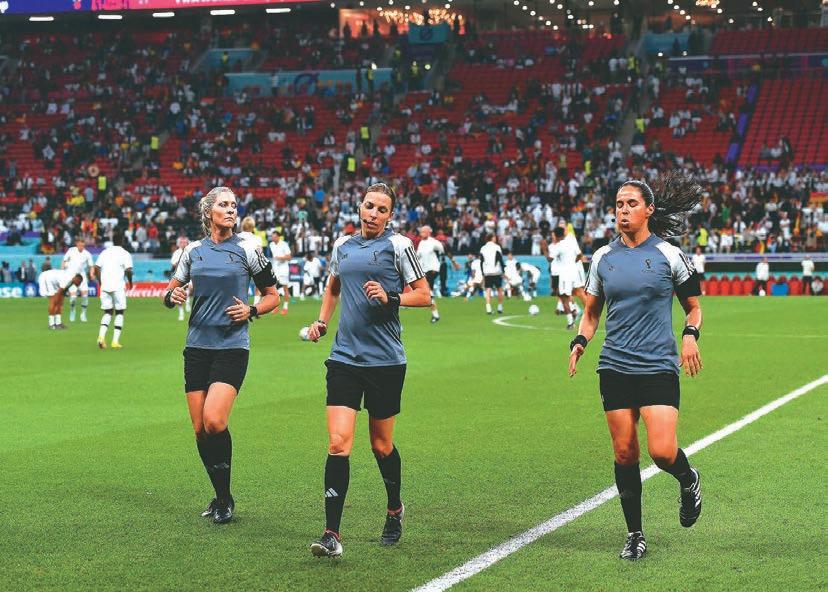 Histórico. La árbitra francesa Stéphanie Frappart se convirtió en la primera mujer en dirigir un partido de un Mundial entre Alemania y Costa Rica.