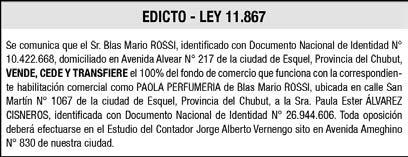 Se vende Fondo de comercio y se alquila local con 32 años de trayectoria. Trelew. Cel. 0280 154613340. (0802)