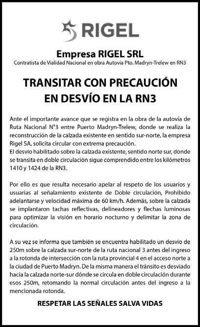 Publicidad: Departamento Comercial Yrigoyen 583 Tel.: (0280) 442-2209. e-mail: gcomercial@grupojornada.com