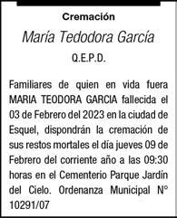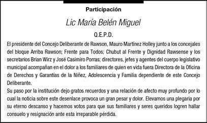 El día (04/02/ 2023) a las 15.30 horas falleció en la ciudad de Trelew. La sra. Josefa Amuchástegui a la edad de 91 años. Sus hijos, hijo político, nietos, hermanas, sobrinos y demás familiares participan de su deceso. Sus restos recibieron sepultura en el cementerio municipal de la ciudad de Trelew el (05/01/23) a las 11.00 horas. Su sentida desaparición enluta a las familias de Amuchástegui, Ricci, Uad, Maza y otras.