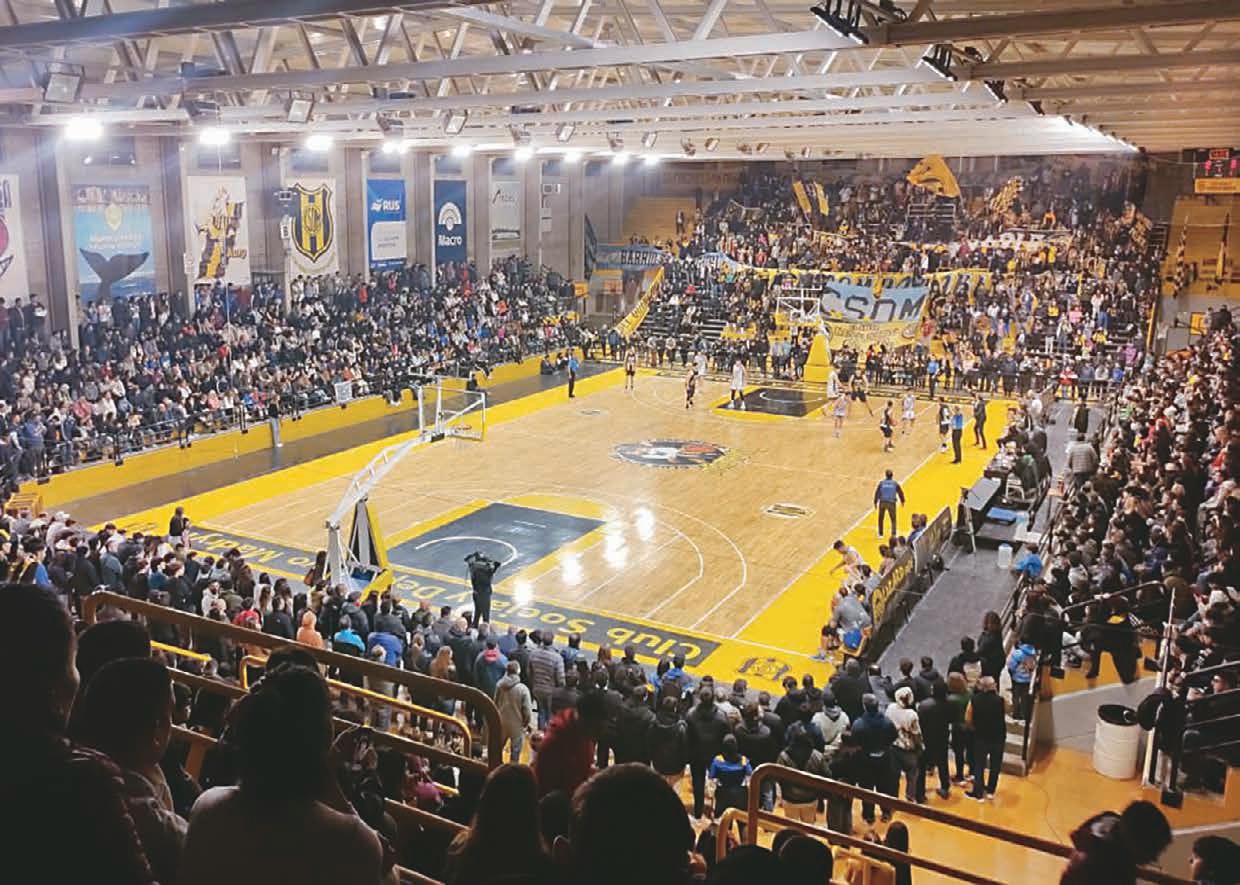 El estadio del Deportivo Madryn repleto en la final en la que ganaron el pentacampeonato del básquet local frente a Brown.