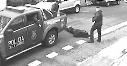 Pocos segundos después, se observa la llegada de un móvil de la Comisaría Vecinal 12 A, perteneciente a la División Despliegue Intervenciones Rápidas (DIR), cuyos ocupantes detienen la marcha, descienden con sus armas reglamentarias y disparan contra el agresor, que perseguía corriendo a su víctima.