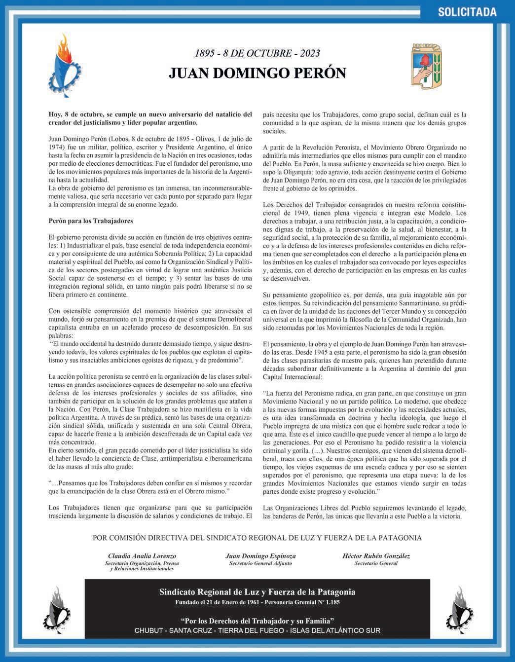 “Nuestra Patria está injustamente distribuida y socialmente desequilibrada, aprendí a tener una mirada alrededor del desarrollo energético y la tarea de pelear por una justa distribución de los ingresos, mejores salarios y jubilaciones”, afirmó.#