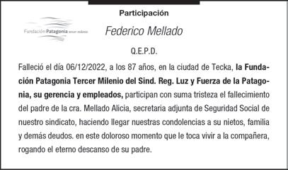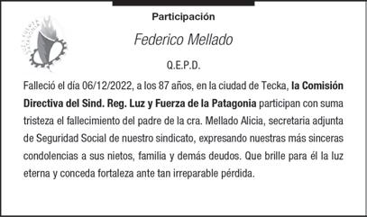 La Comisión Directiva del Sindicato Regional de Luz y Fuerza de la Patagonia, participa con profundo dolor el fallecimiento del padre de la compañera Ingrid Terraza, acompañando a ella y demás familiares ante esta irreparable pérdida, elevando una oración por su eterno descanso.