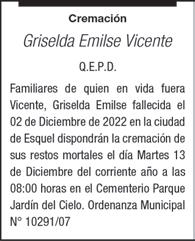Ayer (07 -12-22) a las 05,30 horas falleció en Trelew. El sr. Carmen Petra Donato a la edad de 76 años. Su hijo, hija política, nietas y demás familia res participan su deceso. Sus restos recibirán sepultura en el cementerio parque Jardín del Cielo de la ciudad de Trelew hoy (08-12-2022) a las 11:00 horas. Su desaparición enluta a las familias de Donato, Rodal, Sheffield, Genovecio, Herreras, Naso y otras. Sala velatoria 28 de Julio 1360 sala “D” de Tre lew a partir de las 9 de hoy.