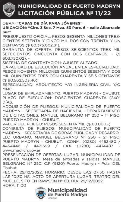Publicidad: Departamento Comercial Yrigoyen 583 Tel.: (0280) 442-2209. e-mail: gcomercial@grupojornada.com