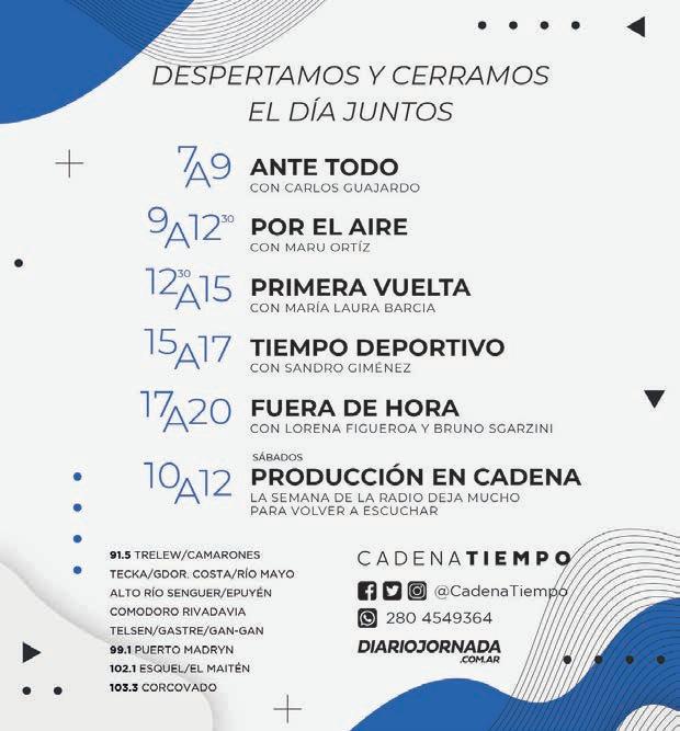 Publicidad: Departamento Comercial Yrigoyen 583 Tel.: (0280) 442-2209. e-mail: gcomercial@grupojornada.com
