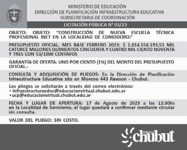 Publicidad: Departamento Comercial Yrigoyen 583 Tel.: (0280) 442-2209. e-mail: gcomercial@grupojornada.com