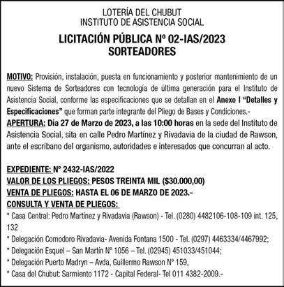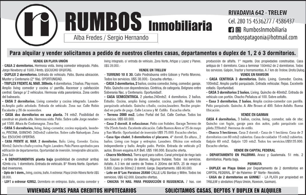 Publicidad: Departamento Comercial Yrigoyen 583 Tel.: (0280) 442-2209. e-mail: gcomercial@grupojornada.com