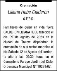 El día (09-08-23) a las 19,35 horas falleció en Trelew. El sr. Osvaldo Javier Fossati a la edad de 45 años. Su madre, hijos, nietos, hermanos, cuñados y demás familiares participan de su deceso. Sus restos recibieron sepultura en el cementerio parque Jardín del Cielo de Trelew (10-08-23) a las 11:00 horas. Su desaparición enluta a las familias de Fossati, Torres, Altamirano, Jones, Espineti y otras.