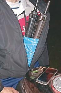 “Al momento de la inspección, los uniformados observaron a simple vista que el motociclista ocultaba un elemento dentro de su campera. Al solicitarle que exhiba sus pertenencias, detectaron que se trataba de dos armas de fuego tipo subfusil con sus respectivas numeraciones suprimidas, sin contar con documentación alguna que justifique su tenencia o portación, encontrándose en infracción a la Ley Nacional de Armas y Explosivos”, informó Gendarmería. # El sujeto y dos ametralladoras.