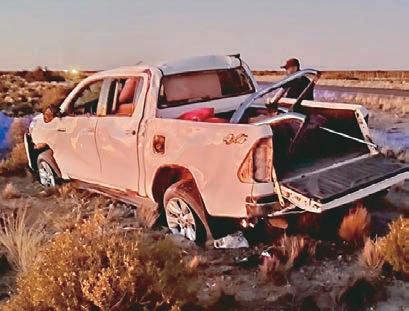 el hombre, que se provenía de Neochea y se dirigía a Comodoro Rivadavia refirió que el viento reinante desacomodó la camioneta, que “mordió” la banquina perdiendo el control del rodado y produciéndose el vuelvo; quedando detenida en un talud de tierra. Como producto del accidente camioneta registró como daños en su techo; rotura de los cristales de la puertas y abolladura en toda la zona lateral izquierdo.#