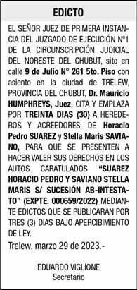 El día (10-07-23) a las 11,00 horas falleció en Puerto Madryn. La sra. Ramona Adelaida Cuevas a la edad de 73 años. Sus hijos, hijos políticos, nietos, hermanos, cuñados y demás familiares participan de su deceso. Sus restos recibieron sepultura en el cementerio municipal de la ciudad de Trelew (11/07/23) a las 11:00 horas. Su desaparición enluta a las familias de Cuevas, Pérez, y otras.
