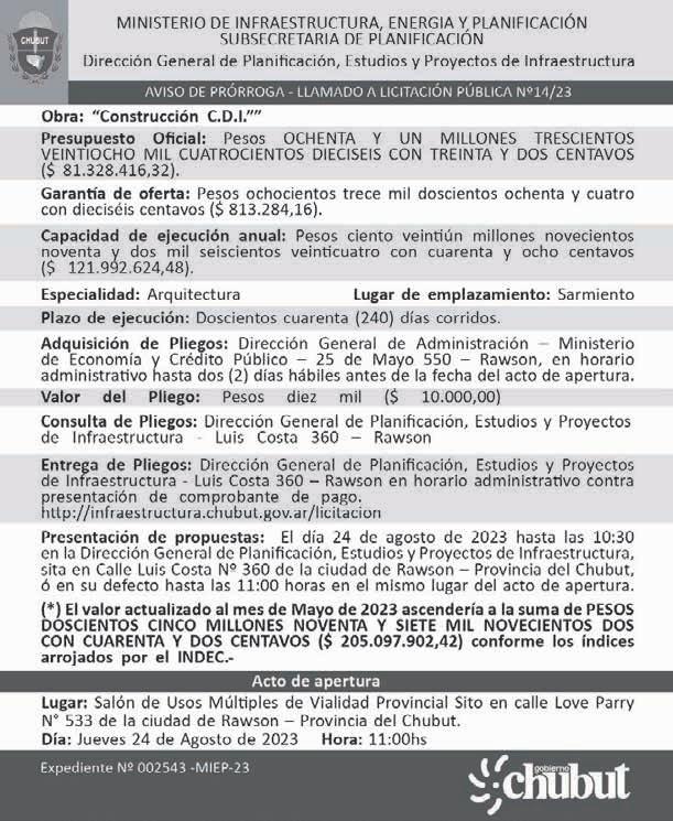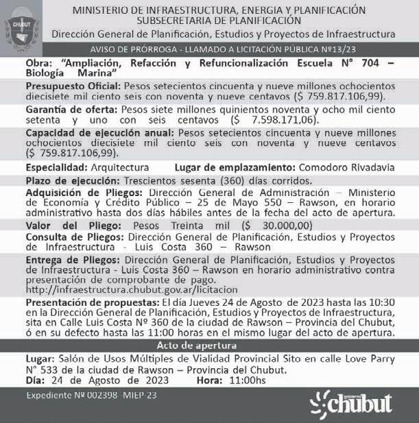 PS. 9, 10 Y 11 CHUBUT TRELEW • LUNES 14 DE AGOSTO DE 20 23 Año LX X • Número 20 738 • 36 Páginas