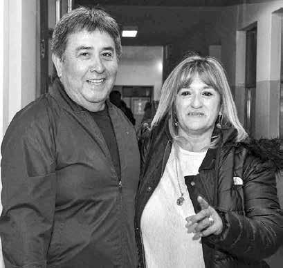 Sonrisas. Claudia Monají (izquierda) y “Nacho” Torres en una postal de la mañana bien temprano en Trelew.
