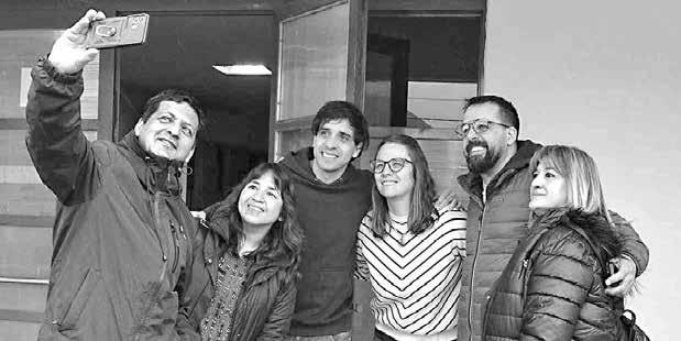 y su grupo de militantes en una postal del comicio en Comodoro Rivadavia, donde no hubo grandes inconvenientes en la logística electoral.