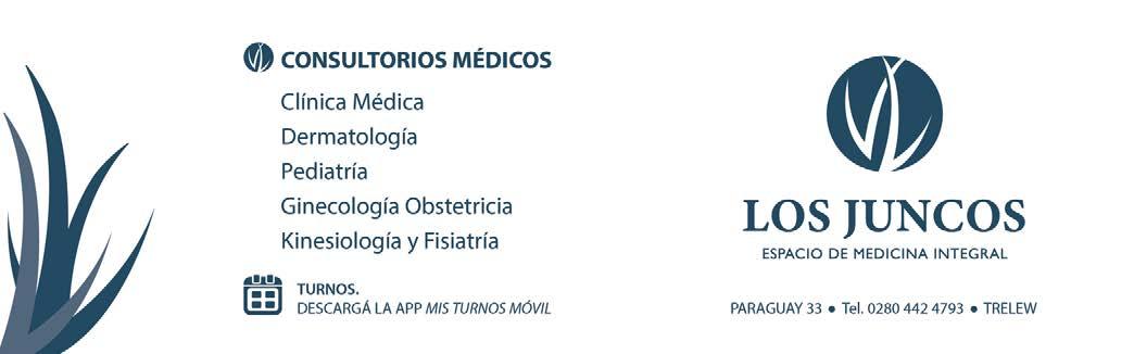 Director periodístico: Carlos Baulde Editor adjunto: Rolando Tobarez Gerente Comercial: Alejandro Urie Derechosdelautor:Estapublicaciónse imprimeentallerespropios(Yrigoyen 583). Trelew - Chubut
