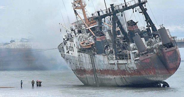Las causas que generó el incendio eran motivo de análisis porque se trata de un barco abandonado en la costa y listo para iniciar con las tareas de desguace.