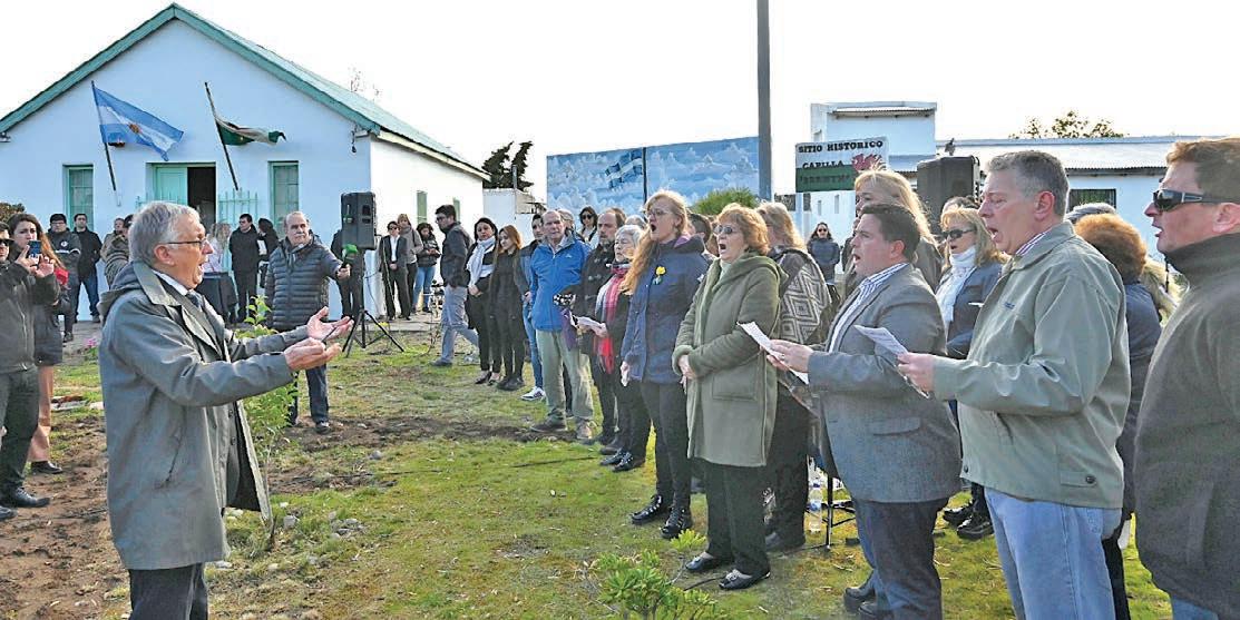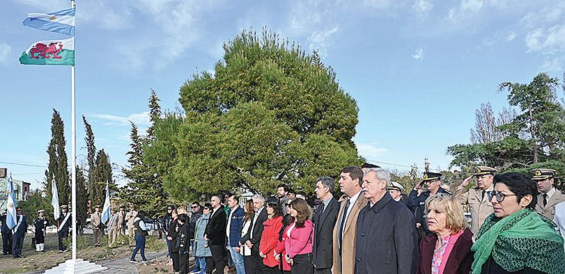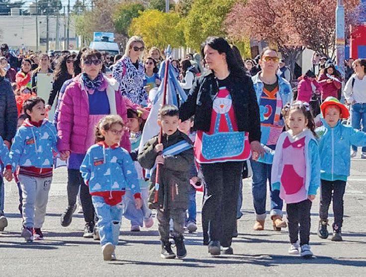 Banderas. Una postal del tradicional paso por la Capilla Berwyn para iniciar los festejos por el aniversario de la capital chubutense. que el organismo provincial aporte $ 600.000 para la adquisición de herramientas e insumos para la producción de olivos.