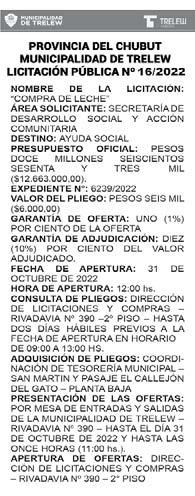 Algunos datos más sobre la llegada de Los Palmeras lo aportó el Boletín Oficial de Chubut. Allí se publicó el Decreto Nº 1123, del 26 de septiembre pasado, en cuyo Artículo 1° se aprue ba la contratación directa de la firma Los Palmeras Producciones S.R.L. “pa ra concretar la presentación y actu ación del grupo musical Los Palmeras en la fiesta de los 100 años del Vie