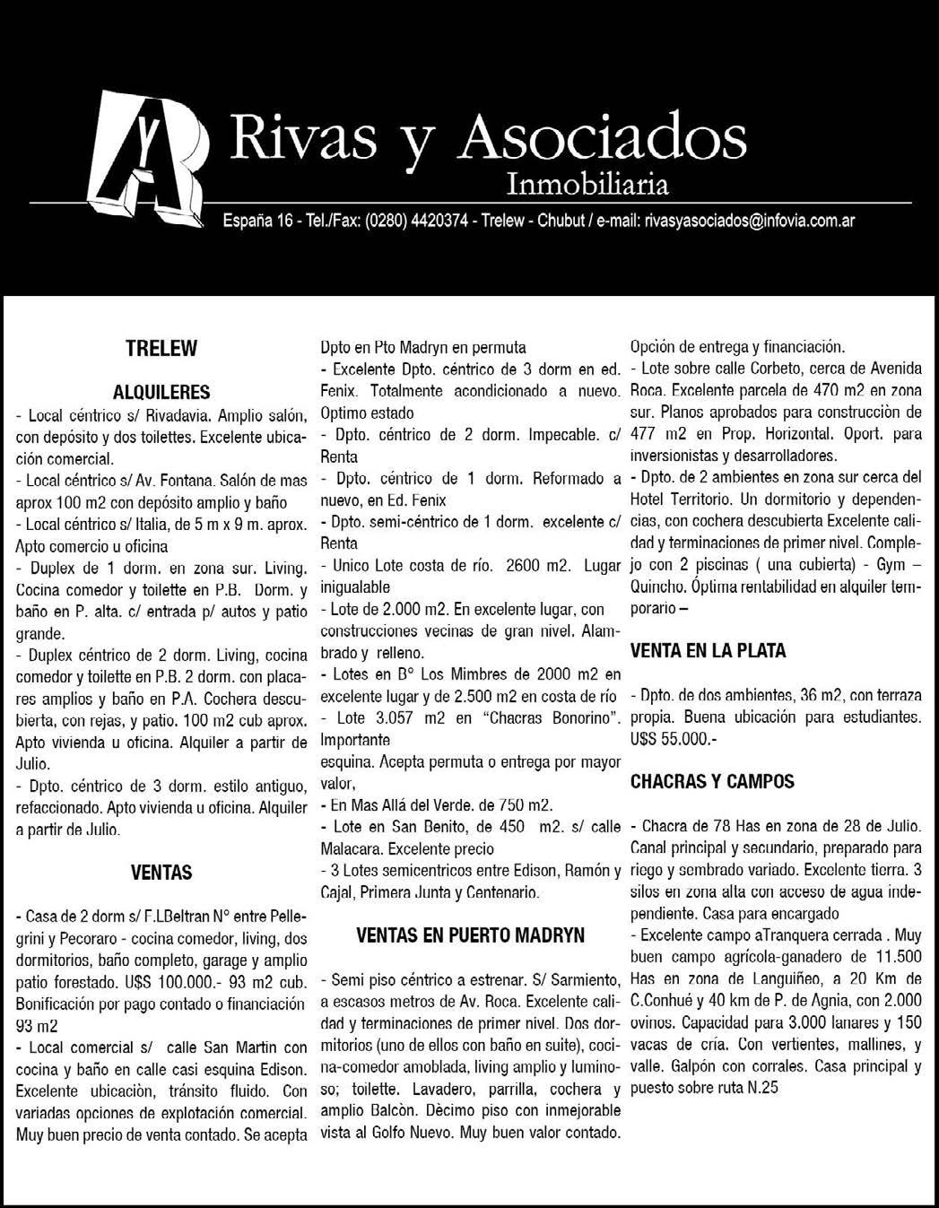 Vendo en Trelew depto 1° piso cocina comedor 3 domitorios baño lavadero sobre calle Alem al 800 barrio Padre J. Muzio. Trelew 0280 154690831 (2106)