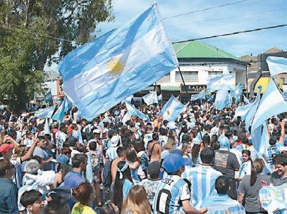 Una multitud copó las calles de Trelew para celebrar la obtención del Campeonato Mundial de Fútbol Qatar 2022.