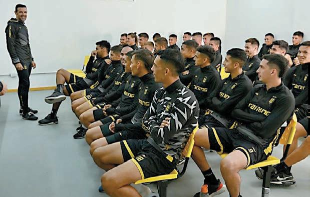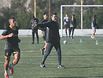 ● El “Chueco” dirigió su primera práctica en Deportivo Madryn. Se presentó con los jugadores y diagramó los trabajos iniciales para el debut. DEPORTIVO