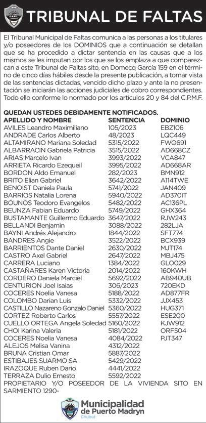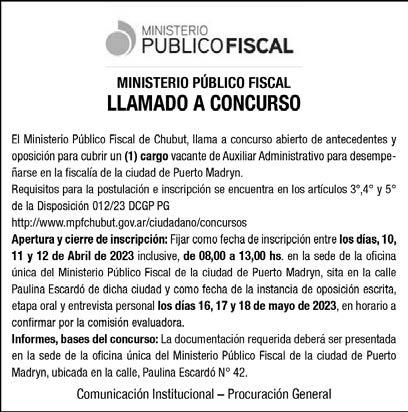 Publicidad: Departamento Comercial Yrigoyen 583 Tel.: (0280) 442-2209. e-mail: gcomercial@grupojornada.com