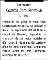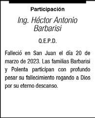 El día (18-03-23) a las 04.00horas falleció en la Ciudad de Trelew. El Sr. Héctor Fabián Sosa a la edad de 48 años. Su esposa, hijos, madre, hermanos, cuñados, sobrinos, tíos, primos y demás familiares participan de su deceso. Sus restos recibieron sepultura en el Cementerio Municipal de la Ciudad de Trelew (18/03/23) a las 16.00 horas. Su sentida desaparición enluta a las familias de Sosa, Llanos, Leviu, Pérez, Neipan y otras.