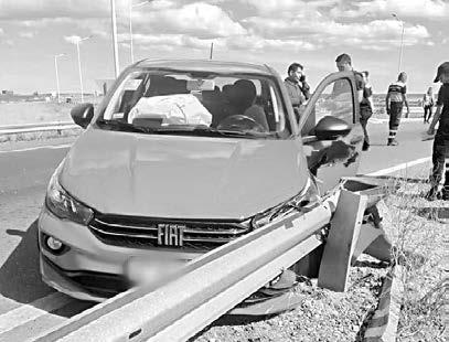 ● Un Fiat Cronos despistó, volcó y fue a dar contra un guardarrail cerca de Madryn, Su conductor, ileso. P. 23