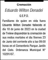 El día (17-06-23) a las 23.50 horas falleció en Trelew. El sr. Bautista Torres a la edad de 63 años. Sus hermanos, cuñados, sobrinos y de mas familiares participan de su deceso. Sus restos recibieron sepultura en el cementerio