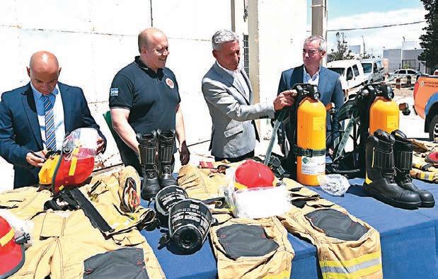 Además, junto a autoridades de Pan América Energy, el gobernador Mariano Arcioni entregó equipamiento a Bomberos Voluntarios de varios cuarteles: un drone, trajes, equipos de respiración autónomos, cascos, guantes, botas y capuchas ignífugas. Además agradeció a PAE “porque cada vez que levantamos el teléfono siempre obtenemos respuesta”.