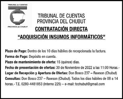 Domicilio legal: Yrigoyen 583 (9100) Trelew, provincia de Chubut. Tel./Fax: (0280) 442-2209 (líneas rotativas). recepcionjornada@grupojornada.com